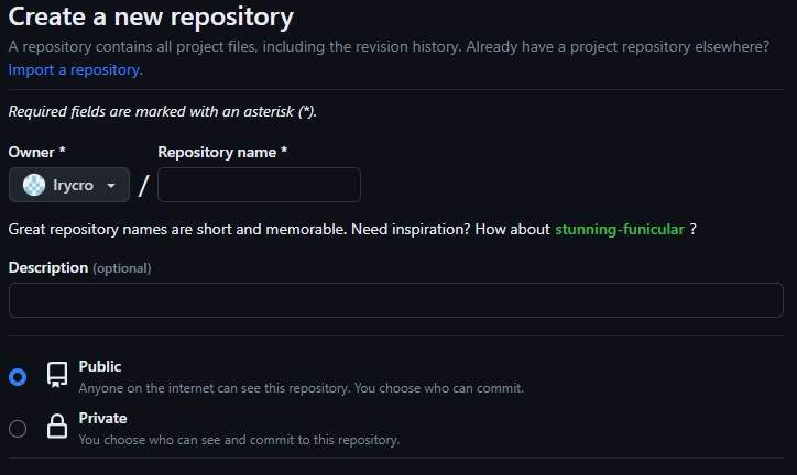 Public Private : ์๊ฒฉ ์ ์ฅ์๋ฅผ ๊ณต๊ฐ ์ ์ฅ์๋ก ์์ฑํ ์ง ๋น๊ณต๊ฐ ์ ์ฅ์๋ก ์์ฑํ ์ง ์ ํํ๋ค. (์ถํ ์์ ๊ฐ๋ฅ)