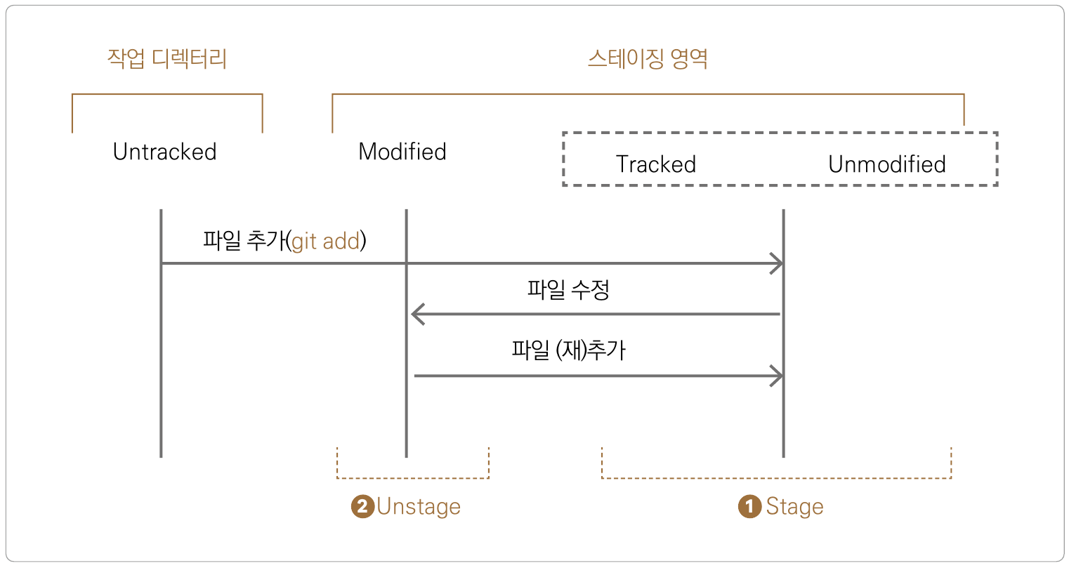 Stage ์ํ๋ Tracked ์ํ์ Unmodified ์ํ๋ก ๋ถ๋ฅํ ์ ์์ง๋ง ๊ฐ์ ์๋ฏธ๋ผ๊ณ ์๊ฐํ๋ฉด ๋๋ค. Unmodified ์ํ๋ Tracked ์ํ์ด๋ฉด์ ํ์ผ์ด ๋ณ๊ฒฝ๋์ง ์์ ์ํ๋ฅผ ์๋ฏธํ๋ค. Unstage ์ํ์ ์๋ ํ์ผ์ ์คํ ์ด์ง ์์ญ์ ์์์๋ ๋ถ๊ตฌํ๊ณ ์ปค๋ฐ์ผ๋ก ๊ธฐ๋กํ ์ ์๋ ์ํ๊ฐ ์๋๋ค. ์ฆ, Stage ์ํ์๋ค๊ฐ ํ์ผ์ ๋ณ๊ฒฝ์ด ์๊ธฐ๋ ์๊ฐ Unstage์ธ Modified ์ํ๋ก ์ด์ ๋๋ค.