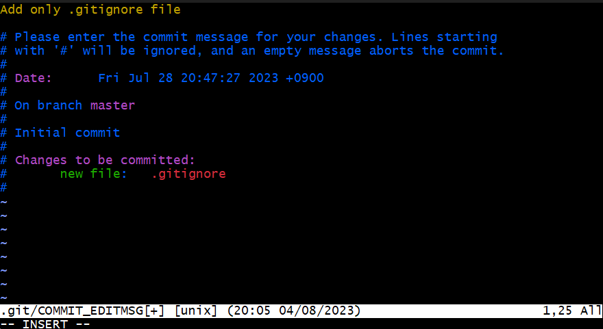 ๋ น์ด๋ฅผ ์คํํ๋ฉด ๋ง์ง๋ง ์ปค๋ฐ ์๋ํฐ ํ๋ฉด์ ๋ณด์ฌ์ค๋ค. ์ปค๋ฐ ๋ฉ์์ง๋ฅผ ์์ ํ๊ณ ๋ค์ ์ ์ฅํ๋ฉด ๋ง์ง๋ง ์ปค๋ฐ ๋ฉ์์ง๊ฐ ์์ ๋๋ค.