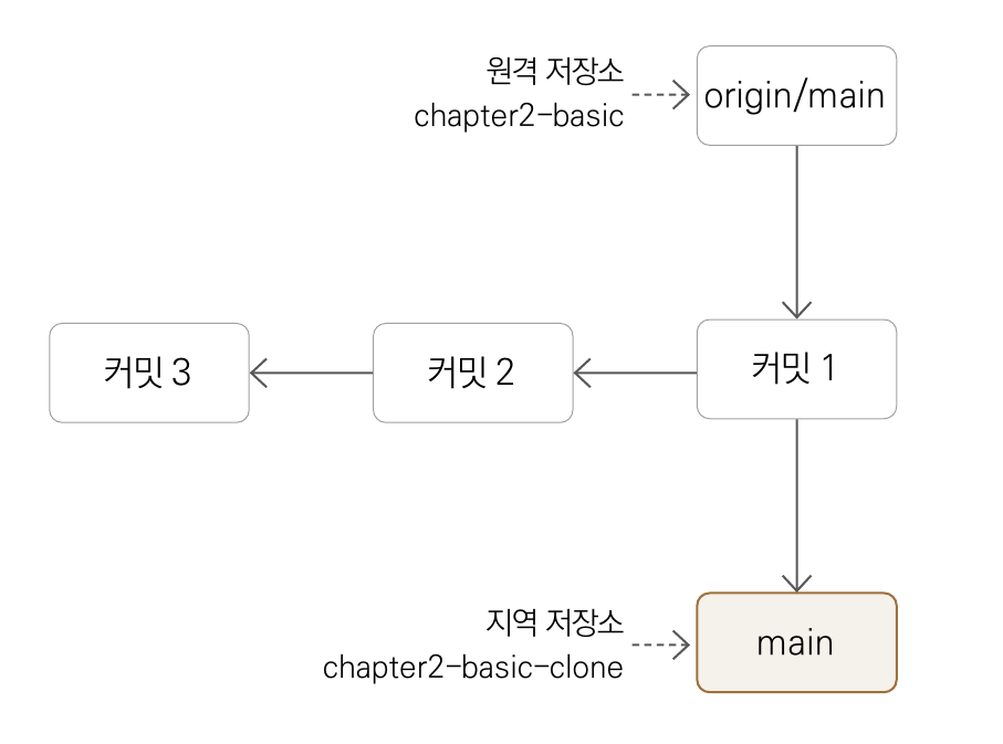 chapter2-basic-cloneμ΄λΌλ μλ‘μ΄ μ μ₯μ μ΄λ¦μ μ§μ νμ¬ μ격 μ μ₯μλ₯Ό 볡μ νλ€.