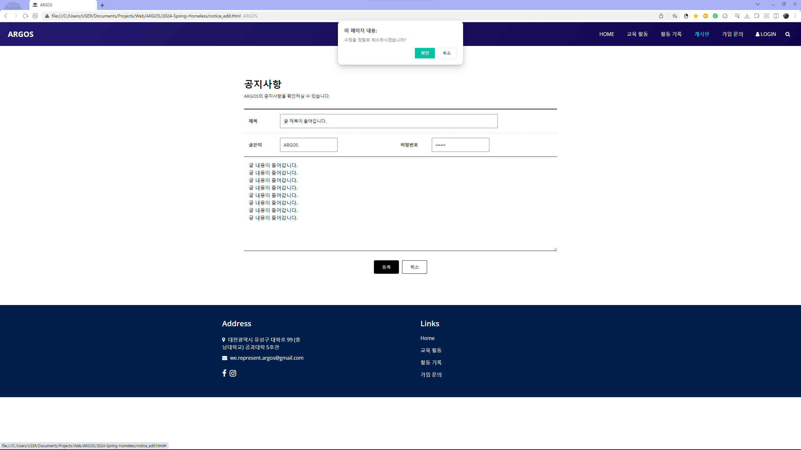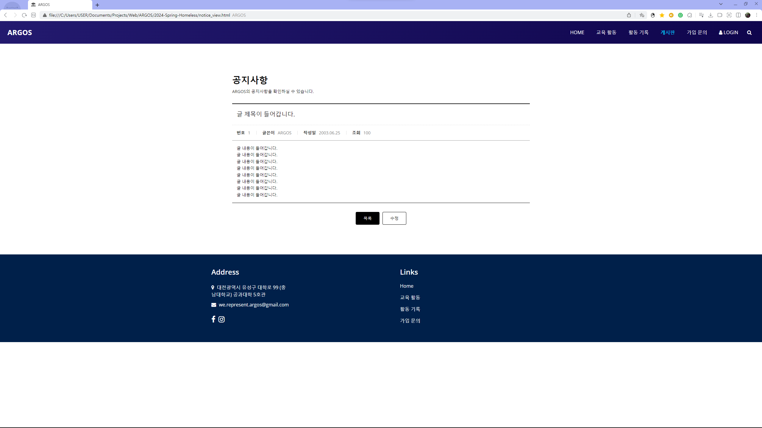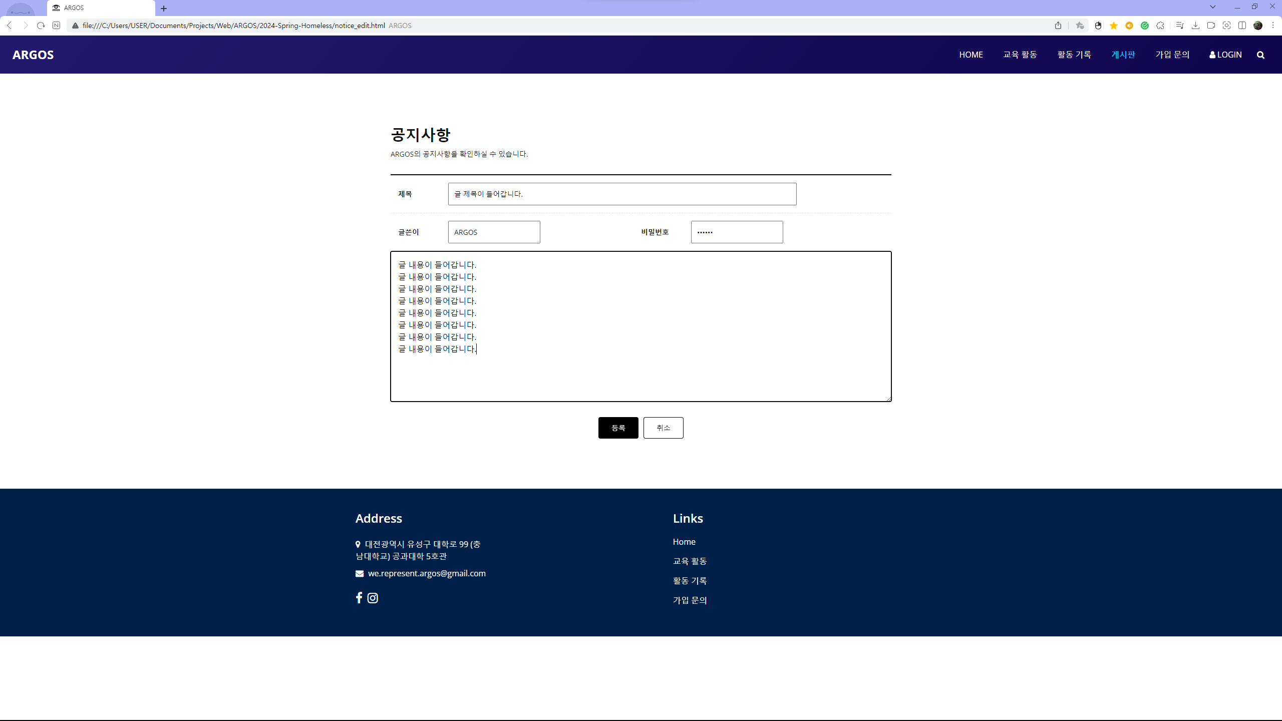 <p>ARGOS์ ๊ณต์ง์ฌํญ์ ํ์ธํ์ค ์ ์์ต๋๋ค.</p>